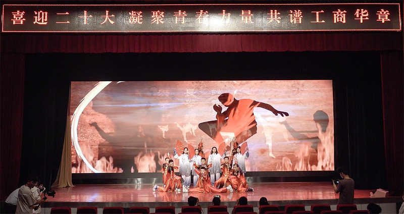 2022年9月8日下午,学校在学术报告厅正厅隆重举办了以“喜迎二十大,凝聚青春力量,共谱工商华章”为主题的第二届青年教职工文艺演出。校长完颜弟、党委书记雒建子、常务副校长马义哈等校领导、各二级学院领导班子和教学总监,职能部门负责人及全校教职工500余人观看了演出。