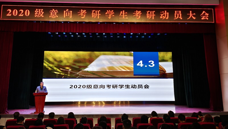 为全面推进2020级学生考研工作,引导意向考研学生认清考研形势,了解考研政策,明确备考方向,帮助同学们更加科学合理地制定考研备考计划,高效执行计划,4月3日,学业与职业能力发展处组织2020级意向考研学生在学术报告厅召开了2020级意向考研学生考研动员大会。学校常务副校长马义哈应邀出席大会并为意向考研学生作了考研动员讲话。各学院值班领导、2020级辅导员和800余名2020级意向考研学生参加了会议。动员会由学业与职业能力发展处尚飞主持。