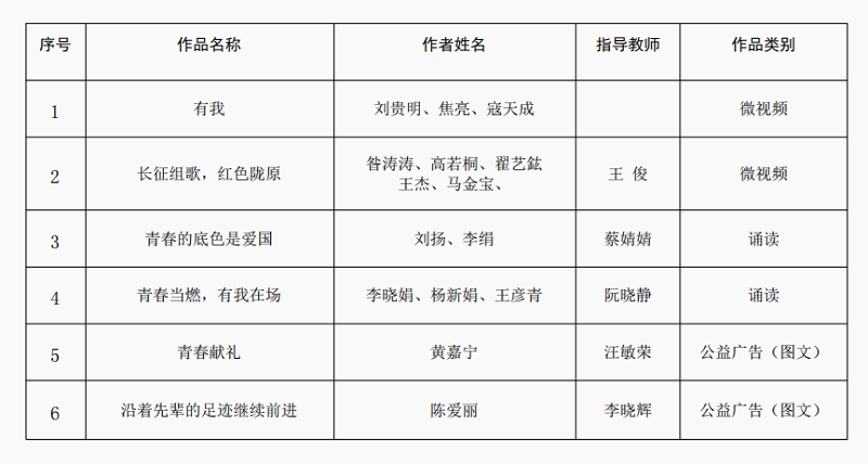为深入学习贯彻落实习近平总书记关于宣传思想工作的重要论述,由甘肃省省委宣传部、省委网信办、省委教工委联合组织主办的“青春献礼二十大 强国有我新征程”全省高校优秀网络文化作品征集展示活动评选结果于近日揭晓,经专家组评审,我校推荐选送的6项作品入围优秀作品名单。