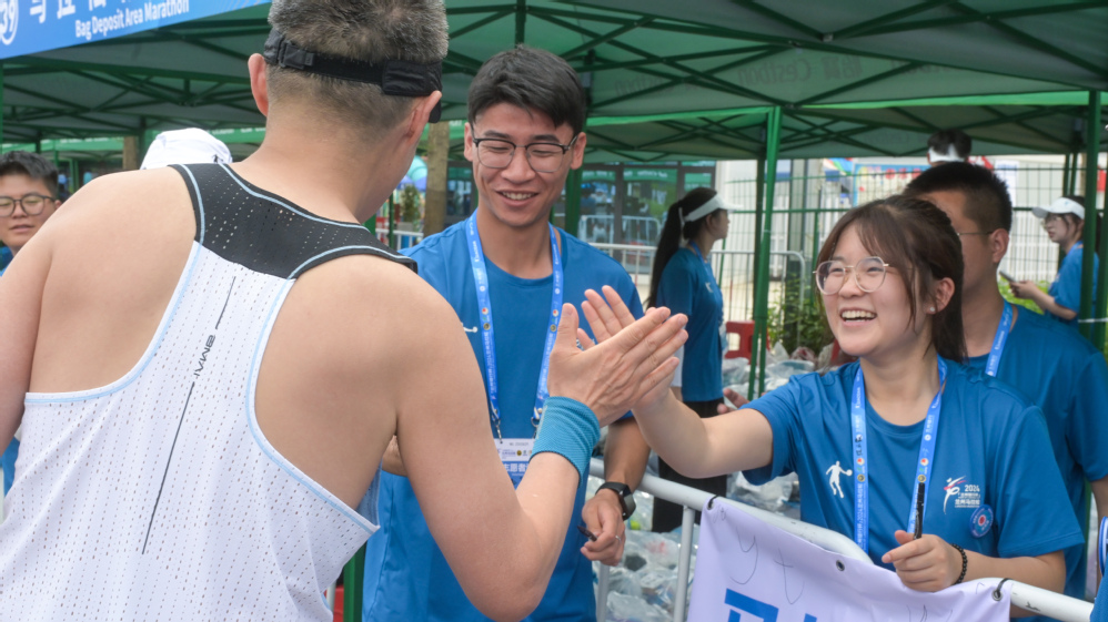参赛者用脚步丈量兰州,志愿者用爱心点亮金城。在比赛当天,志愿者们早早地来到了现场,按照事先分配的任务,迅速投入到了志愿服务工作中。除了完成基本服务工作外,志愿者们还积极参与了各项活动引导与秩序维护工作,他们的身影在赛场上穿梭,用热情和汗水书写着青春的篇章。在志愿服务过程中,志愿者们展现出了高度的责任感和奉献精神。他们始终面带微笑、精神饱满,热情地为每一位参赛者和观众提供周到的服务,展现了我校青年志愿者奋发向上的良好精神风貌。