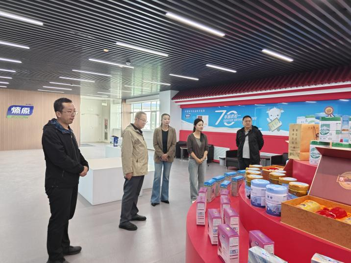 当日下午,调研团队抵达燎原乳业产业园,受到企业高管的热情接待。在燎原乳业马经理的陪同下,学院一行先后参观了企业文化展厅、研发中心及现代化生产线。通过实地考察,调研组深入了解了燎原乳业的发展历程、生产工艺流程、质量管控体系以及市场营销网络。作为农业产业化国家重点龙头企业,燎原乳业完善的产业链条和先进的管理模式给调研组留下了深刻印象。
