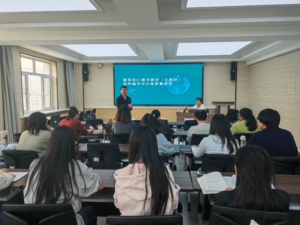 培训中,参训教师主动参与互动交流,立足本校教材建设实际,围绕“AI 辅助生成内容的合规性把控”“学科特色与数字教材形态的融合设计”“多媒体资源嵌入的优化策略” 等关键问题踊跃提问。陈向辉编辑逐一解答,结合国内优秀数字教材案例,从内容架构、呈现形式、政策适配等方面提出了相关建议,现场研讨氛围热烈浓厚。