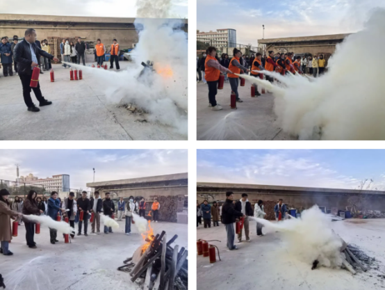 理论培训结束后,全体人员前往指定演练场地开展实操演练。教官示范灭火器“提、拔、握、压”步骤,参会人员依次操作,教官现场纠错指导,确保全员规范掌握技能。
