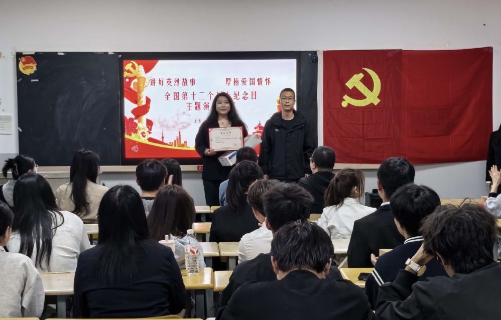 经评委公正评审,比赛最终决出一等奖1名、二等奖5名、三等奖8名及优秀奖若干名。党委副书记李剑在总结讲话中强调,本次比赛是“让英烈故事活起来”的生动课堂,希望同学们将这份感动转化为深耕专业、报国担当的行动,在今后的学习、生活中以土木人的坚守传承英烈精神。