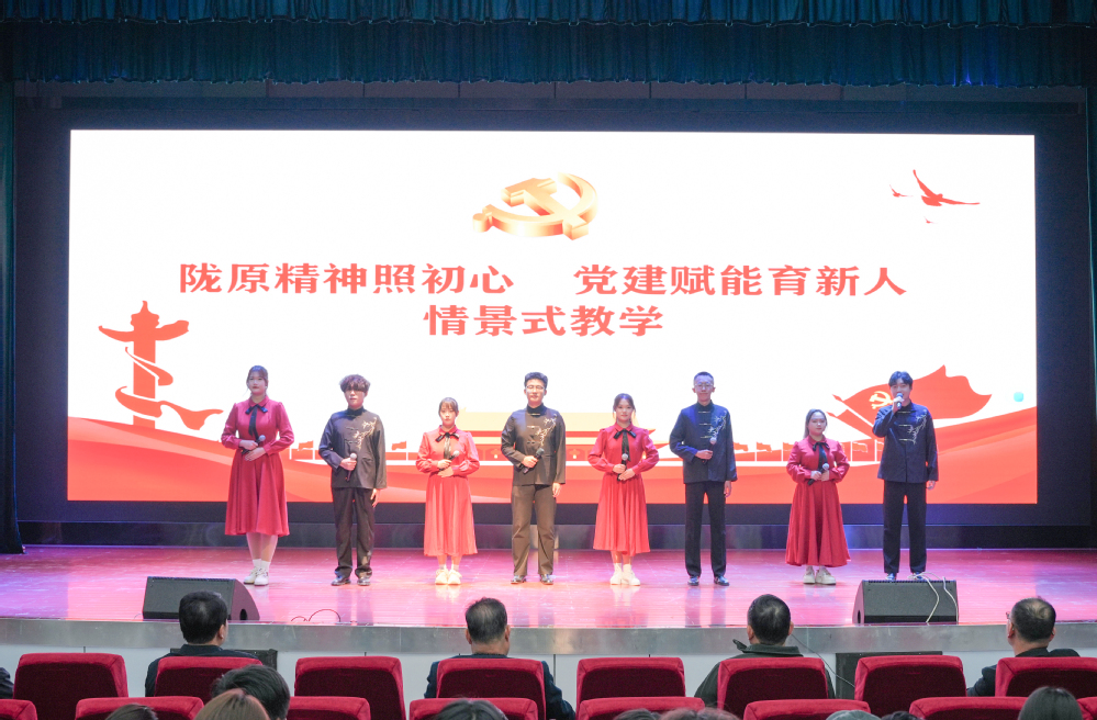 为充分发挥情景式教学在强化党员教育培养和丰富校园文化活动中的独特作用,11月3日下午,由党委组织部与校团委联合举办的“陇原精神照初心·党建赋能育新人”情景式教学活动在学术报告厅正式上演。学校党委书记雒建子,党委副书记郇东,省教育厅督导专员、学校纪委书记高仁杰,党委副书记方来出席活动。党委组织部、宣传部负责人,各学院党政秘书,本期发展对象培训班和第72期入党积极分子培训班学员近800人参加了活动。