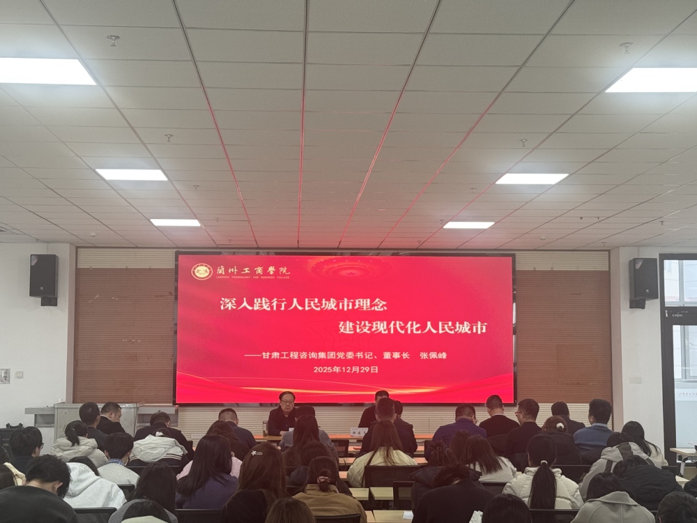12月29日下午,甘肃工程咨询集团党委书记、董事长张佩峰以“深入践行人民城市理念 建设现代化人民城市”为主题,为学校师生讲授思政课。相关校领导、二级党组织书记以及学生代表共200余人聆听学习,报告会由学校党委书记雒建子主持。