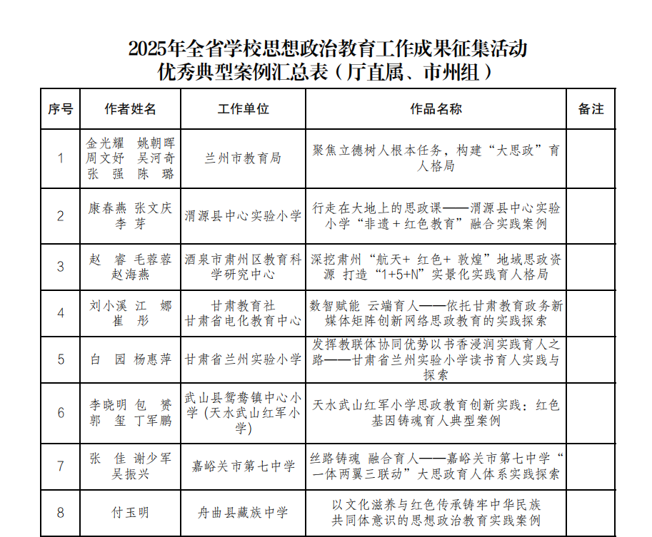 近日,中共甘肃省委教育工作委员会2025年全省学校思想政治工作成果征集活动优秀作品名单已公布,兰州工商学院外语学院晋如意等教师团队的作品荣获高校组优秀典型案例。