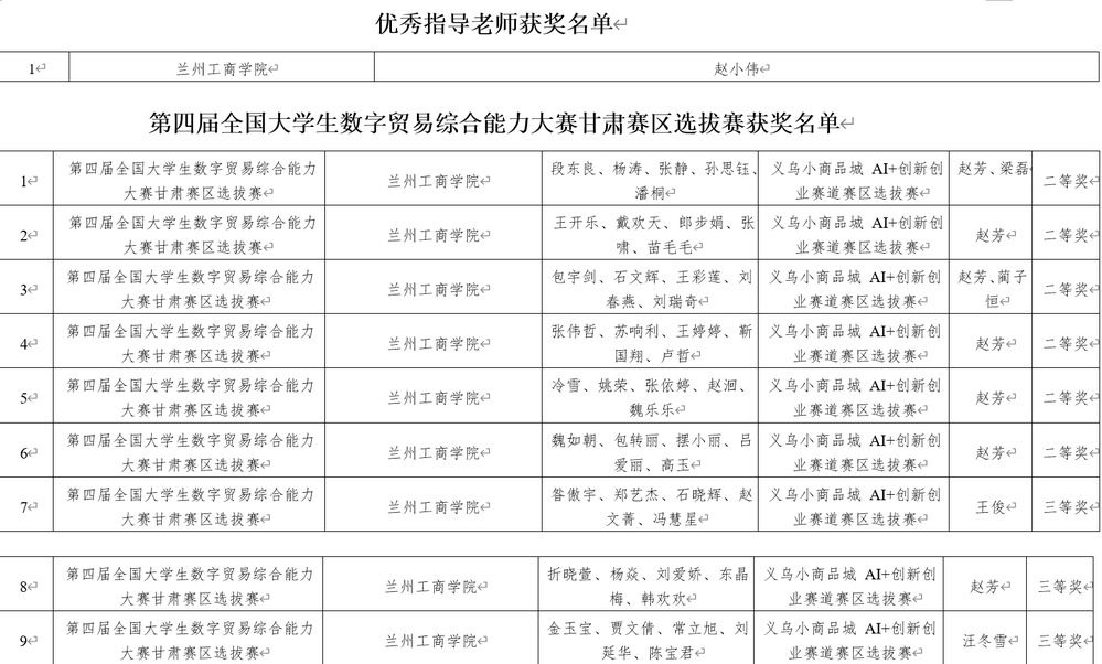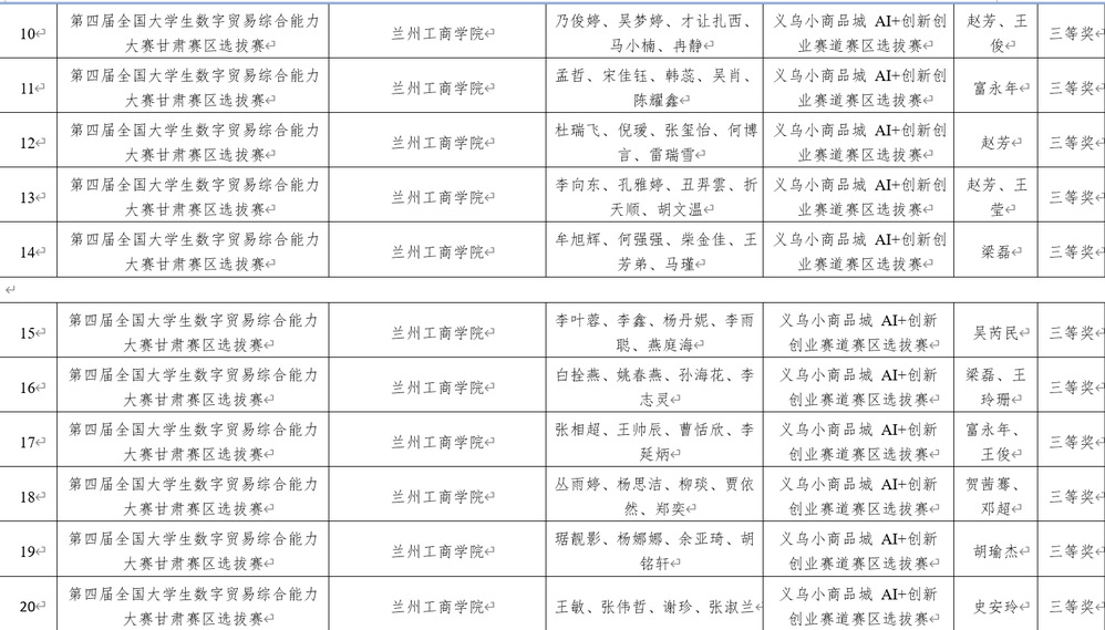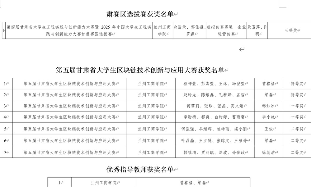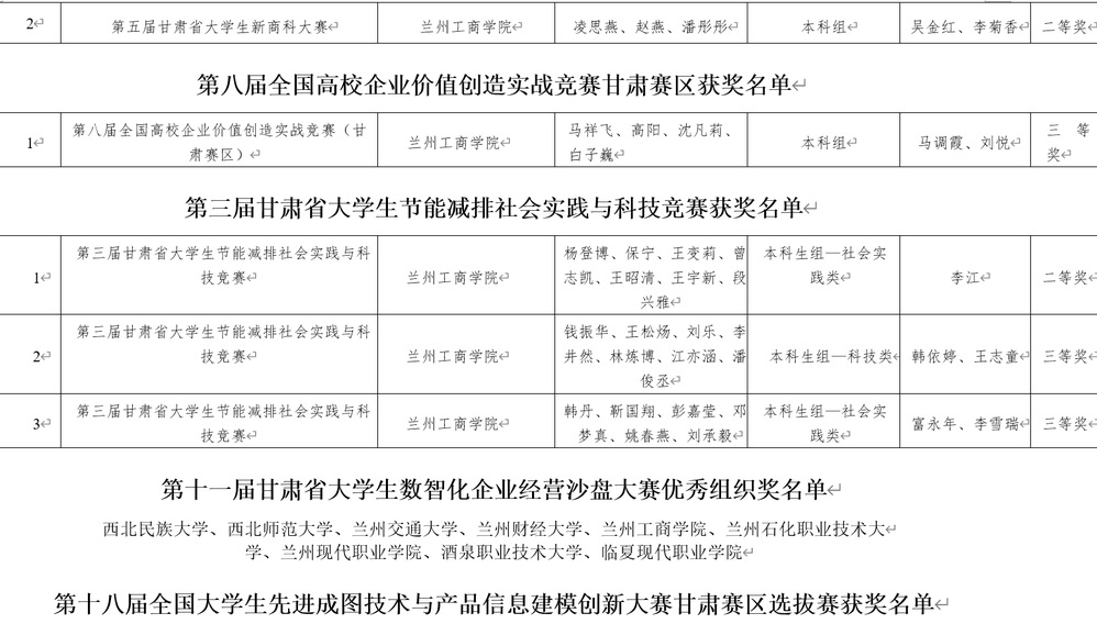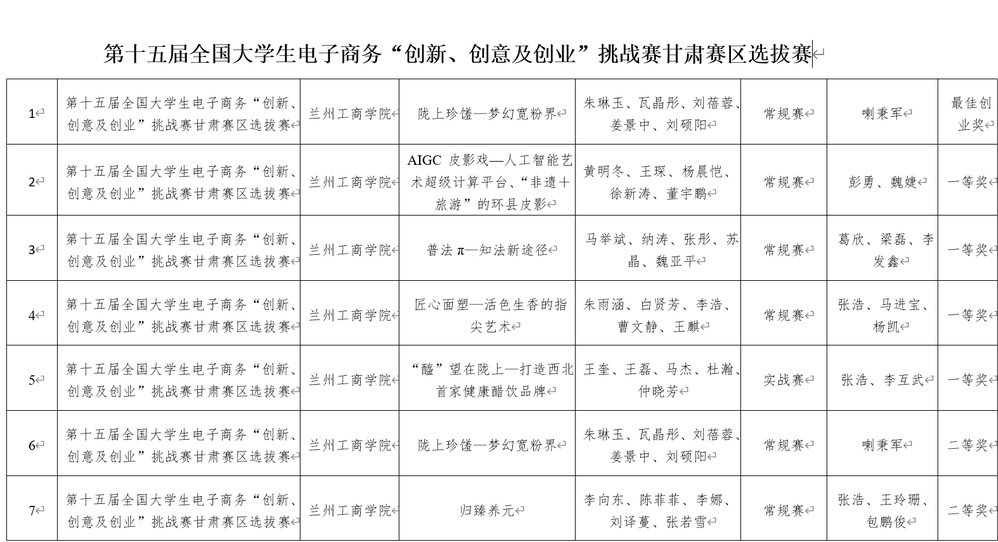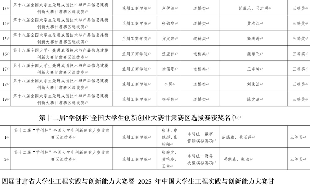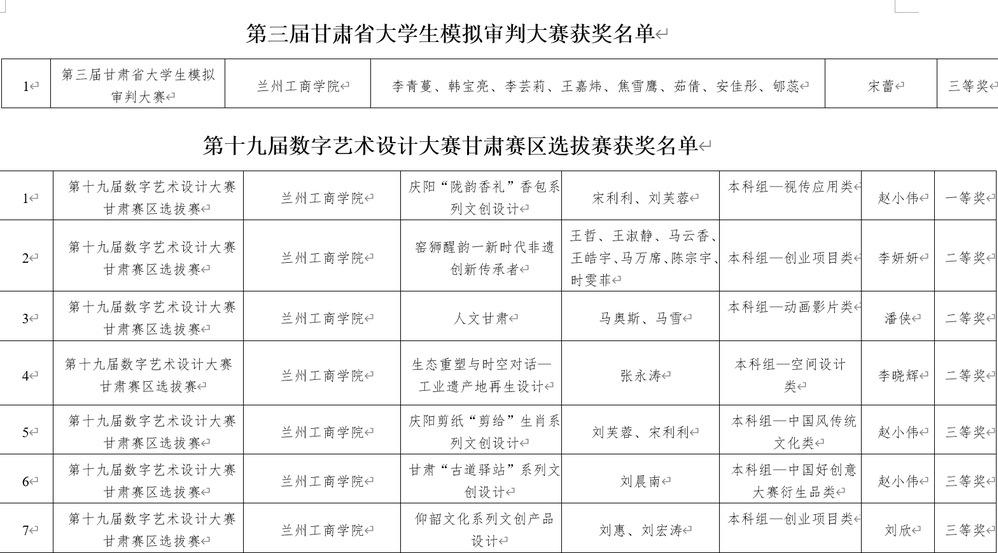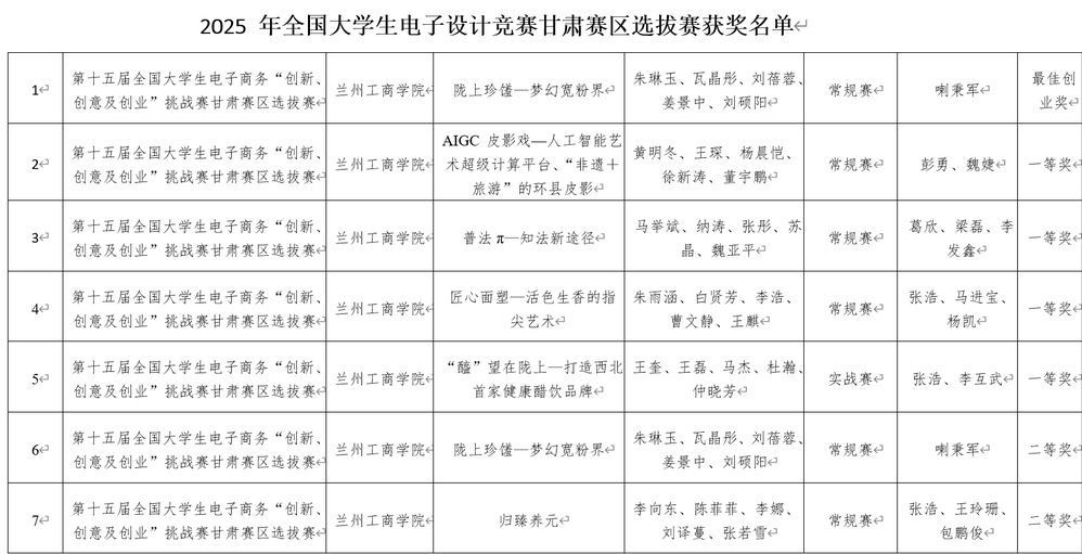 兰州工商学院始终以学科竞赛为重要实践平台,深化“以赛促学、以赛促教、以赛促改” 的教学理念,将专业知识传授与创新能力、实践能力培养深度融合,不仅夯实了学生的专业基础,更激发了其创意潜能与团队协作意识,为培养适应行业需求的复合型、创新型人才提供了有力支撑。未来,创新创业学院将持续优化人才培养体系,鼓励更多学生参与高水平竞赛,在实践中锤炼本领,为学校学科建设与行业育才贡献更大力量。