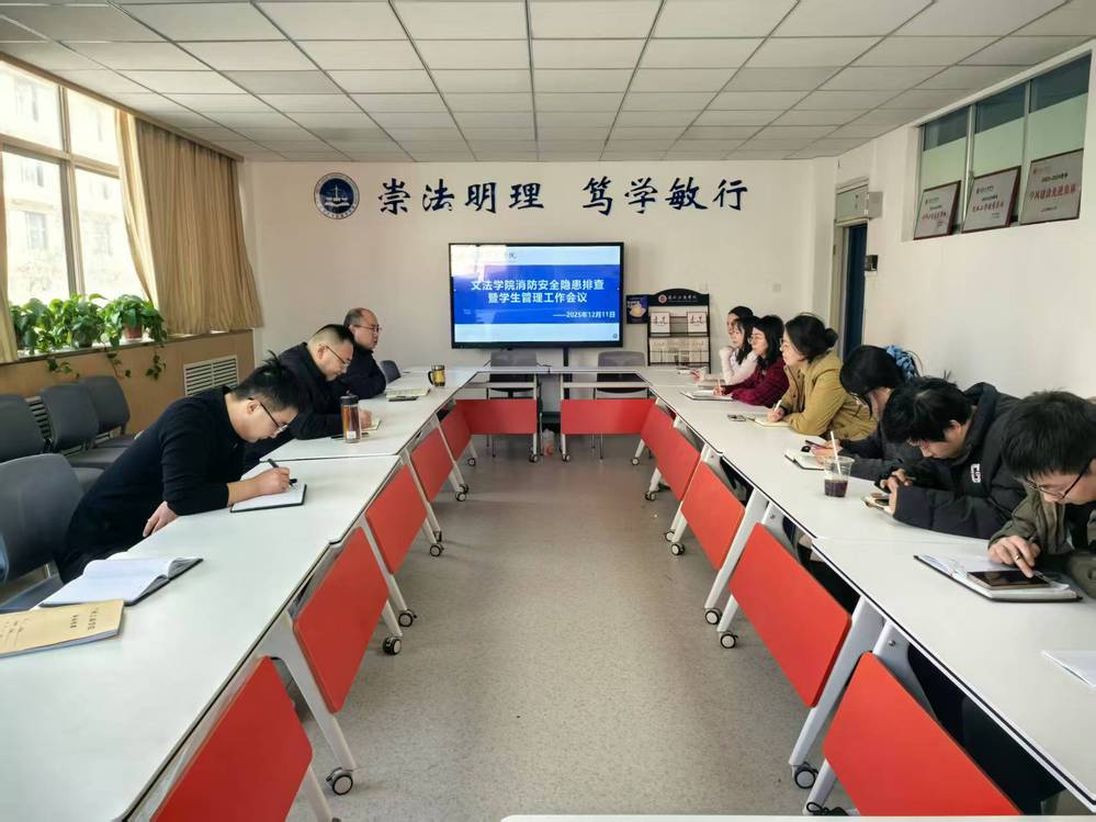 为进一步做好校园消防安全工作,全面增强学生的消防安全意识,12月5日,文法学院在3号教学楼413会议室召开消防安全专题工作会议。党委书记花彤、行政院长刘涛、党委副书记李毅雄、办公室主任唐艳瑢以及全体辅导员老师参加会议。会议由行政院长刘涛主持。