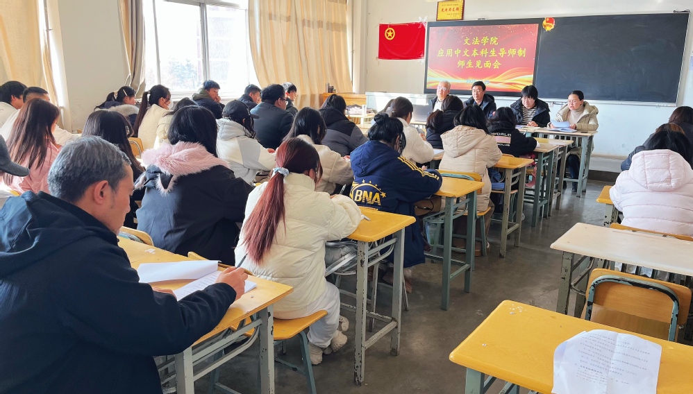 为推进应用中文专业本科生导师制落地见效,搭建师生深度交流的桥梁,将“以学生为中心”的理念落到实处,文法学院于2025年12月25日下午在三号楼306教室,组织召开25级应用中文导师见面会。会议由文法学院教学院长葛欣主持,文法学院李玉璧院长、应用中文专业负责人刘青汉教授、12名专任教师及25级应用中文31名学生共同参会。师生齐聚一堂,共话成长,携手开启育人新篇章。