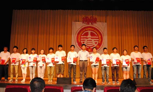 闭营仪式上表彰了此次x挑战所产生的各项奖项获得者,财政金融系王燕彬同学获本届x挑战赛第一名。最后,李金峰主任宣布第六届X挑战胜利闭营。