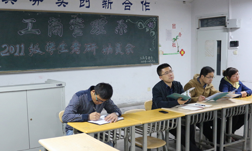 为落实学院关于积极鼓励和促进学生考研的相关工作部署,进一步探讨、交流考研的经验和体会。工商管理系于1019晚举行了2011级学生考研动员会,邀请系副主任孙振兴和管理教研室王蕊婷老师出席并作具体指导。会议由系党总支副书记罗勇主持,2011级各班级20余名正在紧张备战考研的学生参加了会议。
