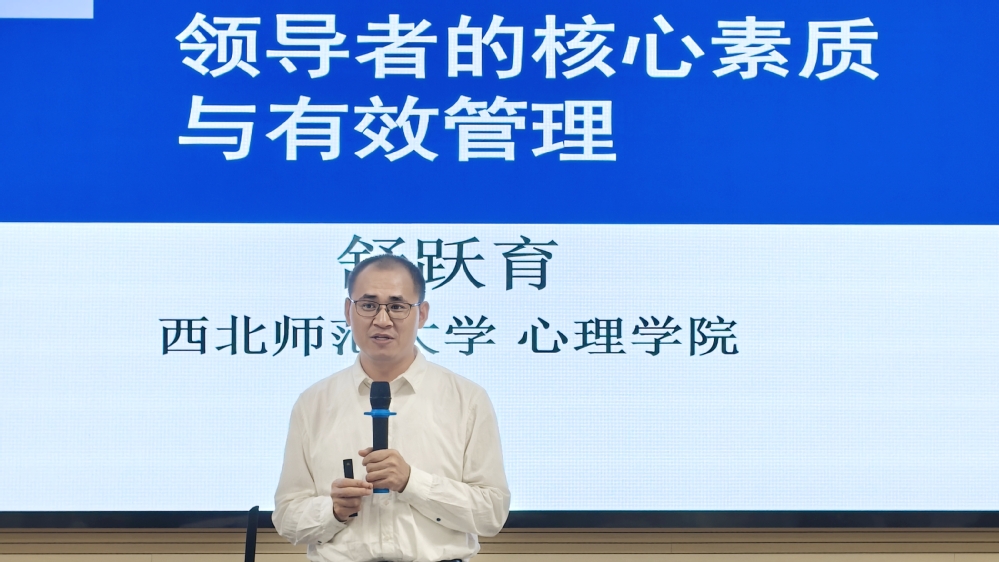 2025年9月26日晚,西北师范大学教授、博士生导师舒跃育应邀在综合教学楼C501为管理学院师生作了题为“领导者的核心素质与有效管理”的专题讲座。讲座聚焦领导者素质与管理效能之间的深层联系,以扎实的理论基础和丰富的实践视角,系统阐述了从“个人能力者”迈向“组织领航者”的关键路径。