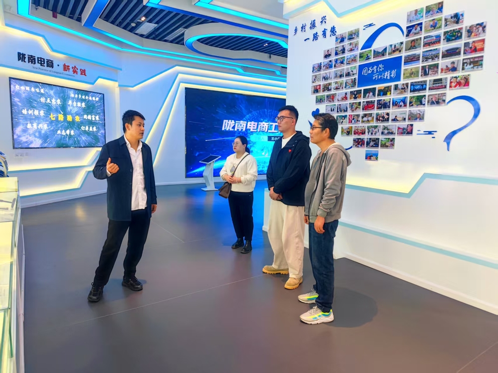 10月15日,调研团队首站走进陇南市电子商务发展研究院。研究院秘书长董朝羽热情接待并主持座谈。他系统展示了研究院在电商孵化、品牌赋能和县域数字商贸网络建设方面的最新成果,戚登林副教授介绍了学院办学定位、调研初衷及创业管理微专业的建设方案。双方围绕课程共建、师资互聘、学生认知实习等话题深入交流,初步达成产教融合战略合作意向。