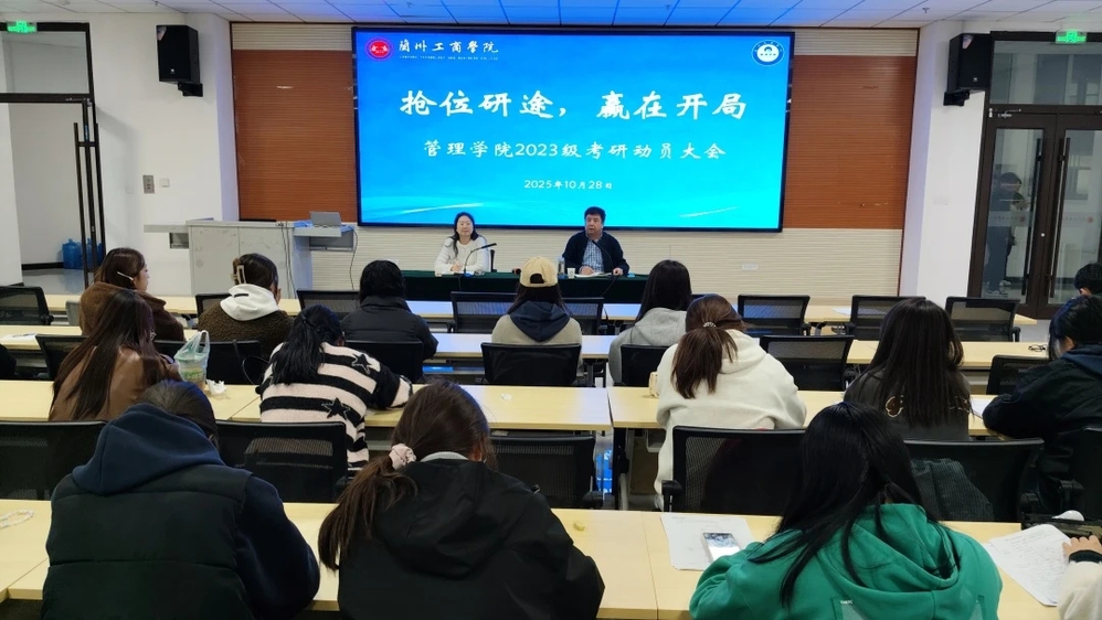 为进一步帮助我院2023级学生明确考研目标、掌握备考策略,为即将踏上考研征程的学子注入信心与动力。2025年10月28日晚,管理学院于综合教学楼C501教室召开了“抢位研途,赢在开局”2023级考研动员会议。会议由院长把多勋教授主持,教学院长徐燕及2023级部分学生参会。