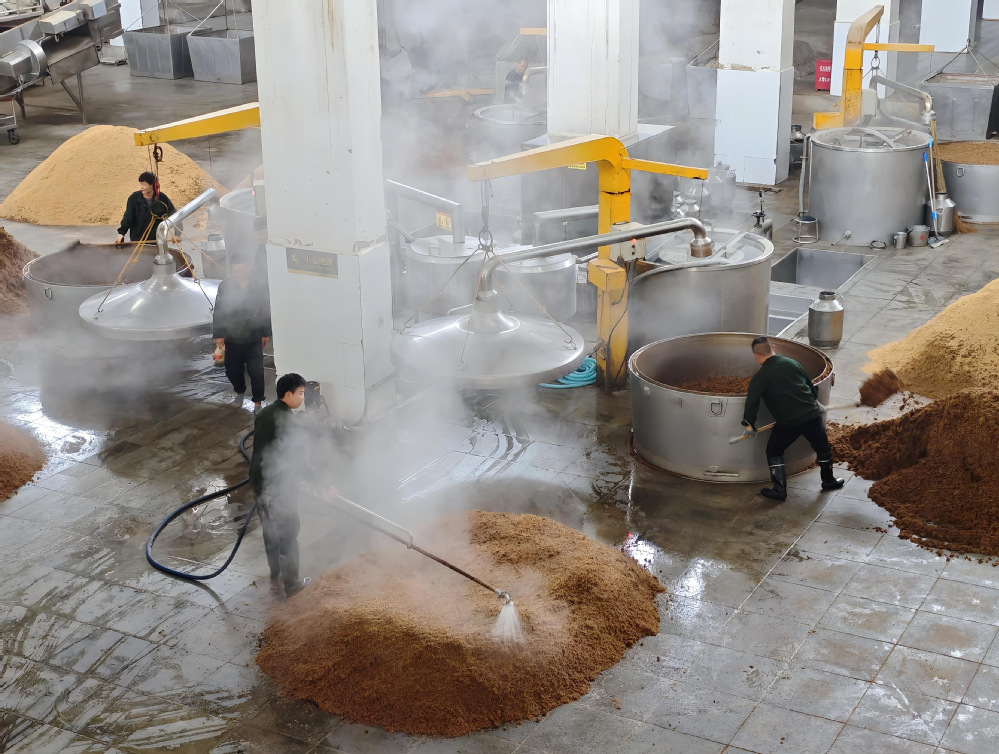 在讲解员的带领下,同学们依次参观了制曲车间、酿酒车间、明代酒海养酒馆、万吨陶坛库及现代化包装线,全程近距离感受“浓香西北第一窖”400余年的古法酿造技艺。讲解员把“酿造生态酒,传递正能量”的企业使命与“绿水青山就是金山银山”的生态理念融入讲解,引导学生在品味酒文化的同时,理解绿色发展、质量强国、品牌强国等国家战略背后的产业逻辑,进而将专业认知升华为价值认同。