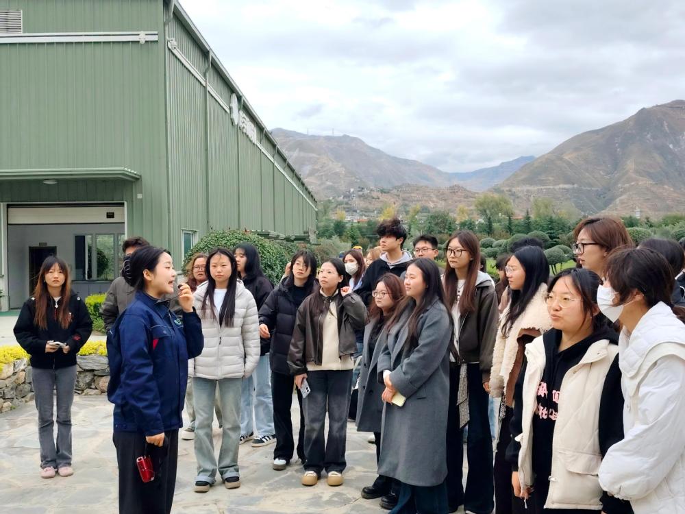 随后,同学们在讲解员的带领下参观了祥宇生态园区。生态园区内,油橄榄树郁郁葱葱,现代生产线掩映其间,科技与自然相映成趣。讲解员进一步介绍祥宇公司在科研合作、联农带农等方面的做法,生动诠释了“打造一个品牌、带动一个产业、造福一方百姓”的发展理念。参观中,大家围绕生产流程优化、供应链管理等话题踊跃提问。祥宇公司人资部主管申倩莉结合实例回应:每一瓶优质橄榄油,都是劳动者精益求精与科学管理共同作用的结果。这份“看得见”的标准化与“看不见”的匠心,让同学们真切体会到劳动的价值,也点燃了专业学习的热情。