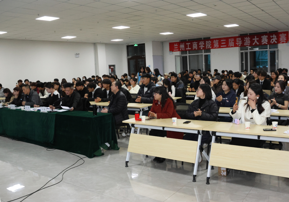 2025年11月16日晚,兰州工商学院“第三届导游大赛”在综合教学楼C501教室圆满落幕。本次大赛由管理学院主办,旅游管理教研室承办,以“丝路新韵·陇原寻梦”为主题,围绕“文化传承”与“当代发展”双重视角,引导参赛选手深入挖掘省内代表性景点的历史内涵与时代价值,展现甘肃丰富的旅游资源与深厚的文化底蕴。