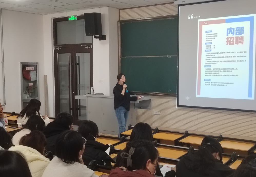 2025年11月28日下午,管理学院管理大讲堂系列讲座在综合教学楼C504顺利举行。本次讲座特邀今麦郎食品有限公司营销中心西北区HRBP负责人陈龙吟女士,以“快消行业HRBP实战:从支持业务到驱动增长——基于‘靶心战略’的17年西北区域组织能力建设实录”为题,为管院师生带来了一场理论与实践深度融合的精彩分享。人力资源管理、市场营销(数智营销)等相关专业学生到场聆听。