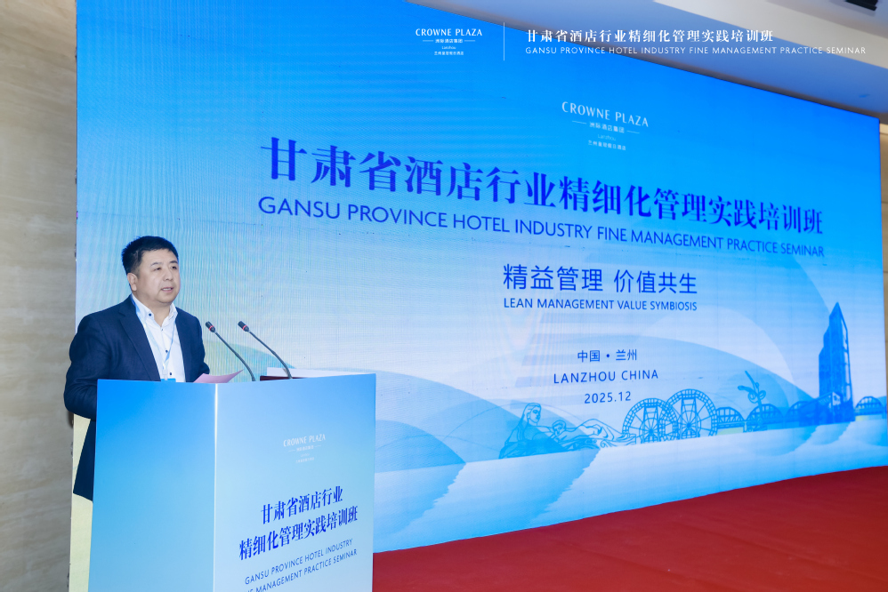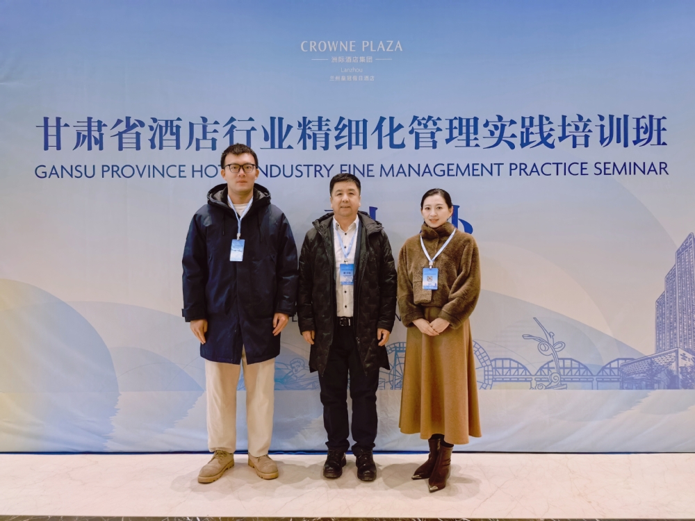 2025年12月3日—5日,甘肃省首届酒店行业精细化管理实践培训班在甘肃国际会议中心成功举办。管理学院院长把多勋教授受邀出席开班仪式并致辞,工商管理教研室主任宋豪琦、旅游管理教研室教师刘雯菁全程参与培训。