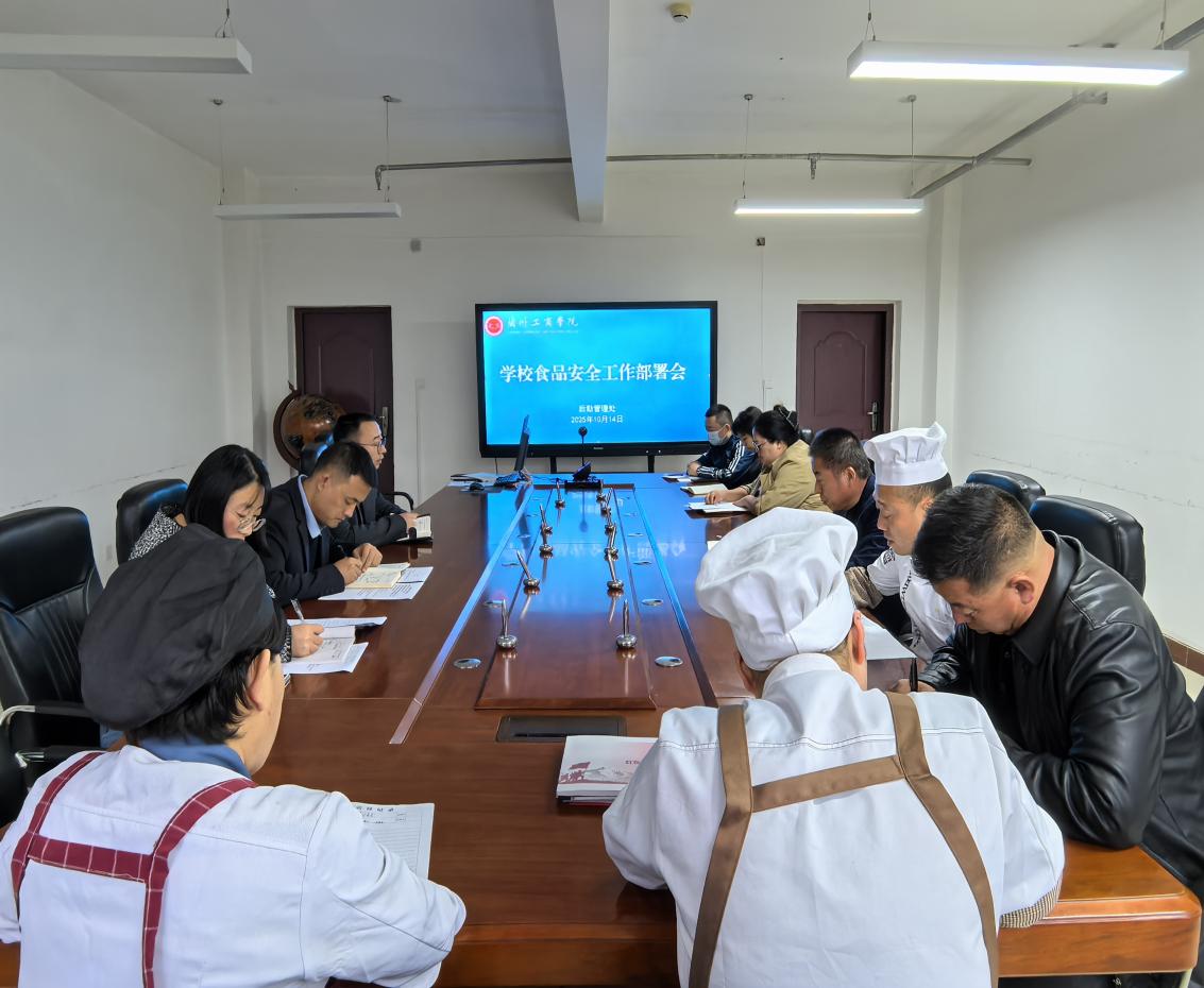 为进一步强化校园食品安全管理,系统总结近期工作成效与不足,精准部署下一阶段重点任务,2025年10月14日下午,后勤管理处在科研楼302会议室召开校园食品安全工作部署会暨2025-2026学年第一学期第二次月调度会。后勤管理处处长姚建刚、膳食科科长王强及科室成员高婷婷、闫旭东,各餐饮小组食品安全总监、安全员参加会议,会议由王强主持。
