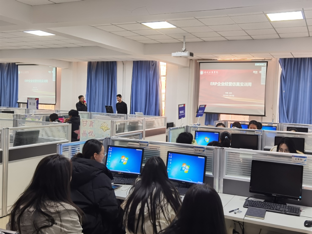 12月25日,第三期ERP企业经营仿真实训周在我校实验楼二楼大商科综合仿真实训中心正式启动,来自各相关专业的百余名学生齐聚一堂,共同投入为期一周的企业经营模拟实践。
