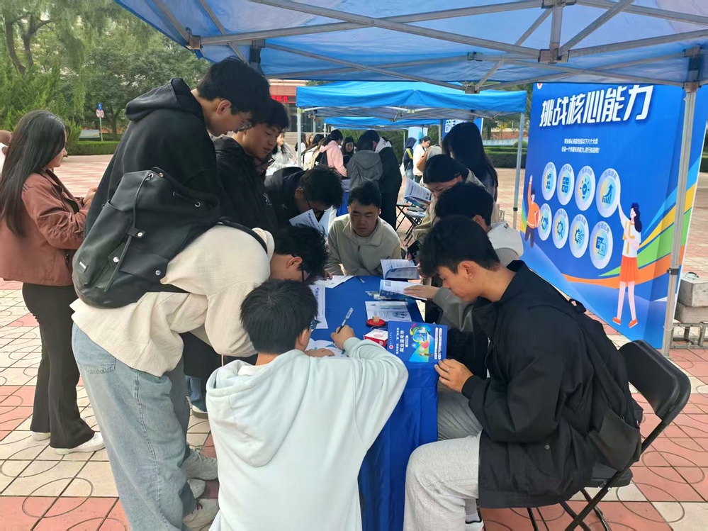 活动现场氛围热烈,学生在开放活泼的环境中开启了系统性的职业探索。活动突破传统教学模式,创新设计十大户外闯关环节,内容涵盖自我认知、职业探索、能力构建与团队协作等多重维度,有效推动学生由“被动接受”转向“主动建构”,在实践参与中思考发展方向,在互动体验中明确成长路径。