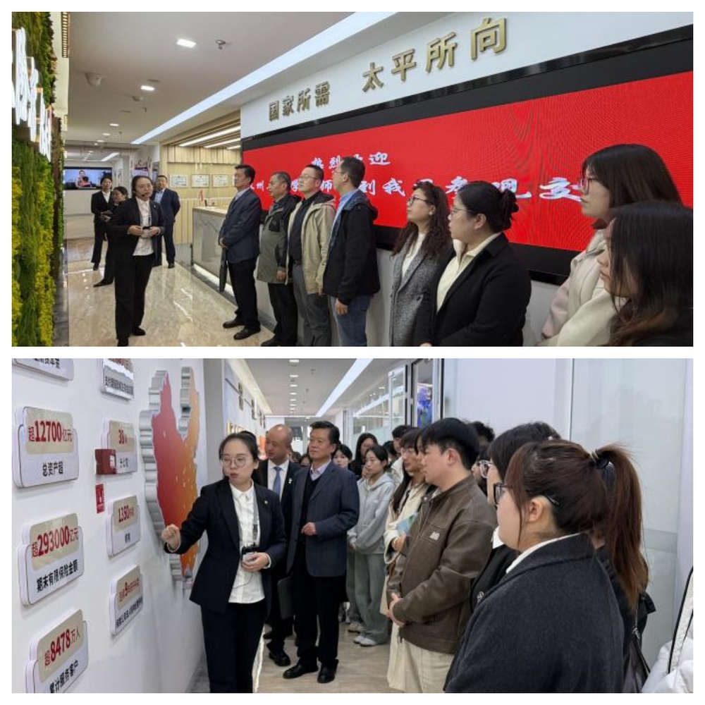在工作人员的引导下,师生们一同观看了企业宣传片,并参观了公司的文化墙。通过系统的讲解与展示,大家深入了解了太平人寿的发展历程、企业核心价值观、社会责任履行、荣誉成就与未来愿景,深刻感受到了企业稳健发展背后的文化驱动力。
