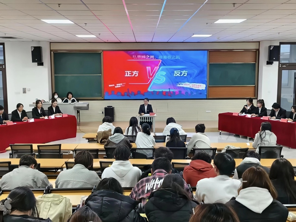 为丰富校园文化生活,锤炼学生逻辑思辨素养与语言表达能力,深化学风建设成效,12月3日,经济学院“弘思辨之尚,展青春之风”辩论赛决赛在综合教学楼C502精彩上演。经济学院辅导员王荣老师、任林娜老师、符玉霞老师受邀担任本次决赛评委,与现场学子共同见证这场思辨盛宴。