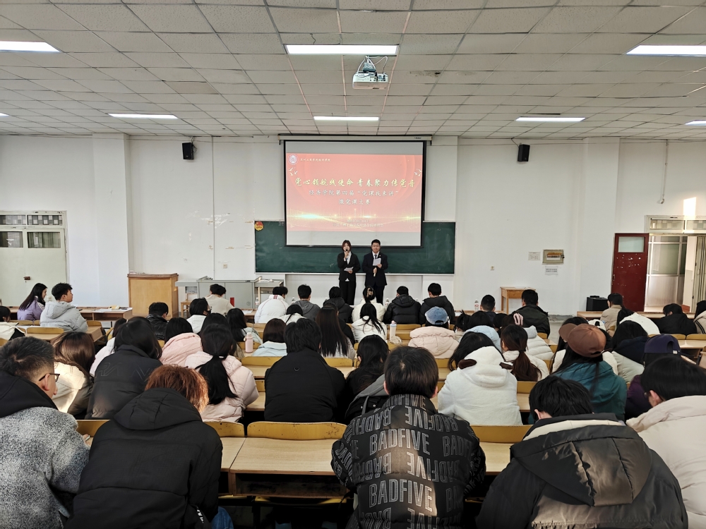 为深入学习贯彻习近平新时代中国特色社会主义思想,推动党的创新理论“青年化”阐释与传播,2025年12月11日,经济学院第四届“党课我来讲”微党课大赛在一号楼415教室成功举办。经济学院党委副书记马晓天、党政秘书邓超出席活动,参赛选手与师生代表齐聚现场,共同见证青年学子以主讲人身份传扬党音的思政盛宴。