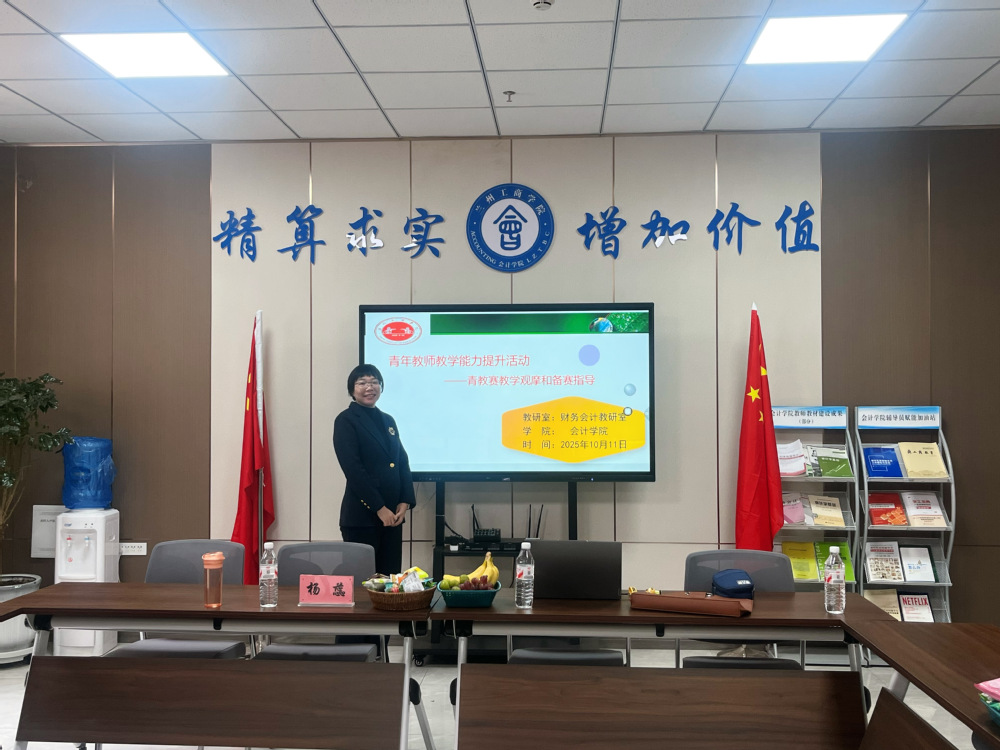 为深入学习贯彻习近平新时代中国特色社会主义思想和党的二十大精神,积极响应学校关于加强师资队伍建设的部署要求,会计学院财务会计教研室于2025年10月11日成功举办“青年教师教学竞赛观摩指导”活动。此次活动旨在通过专业指导与教学观摩相结合的方式,全面提升青年教师的教学能力和专业素养,推动教育教学质量持续提升。财务会计教研室全体教师参加此次活动。