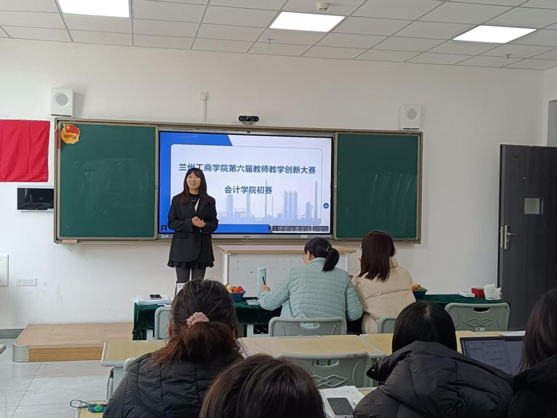 2025年12月3日下午,兰州工商学院会计学院第六届教师教学能力创新大赛初赛在综合楼A103教室顺利举行。本次大赛由会计学院教学副院长李菲主持,特邀兰州财经大学会计学院副院长芦海燕副教授,甘肃政法大学教授简冠群担任评审专家,会计学院教师到场观摩学习。