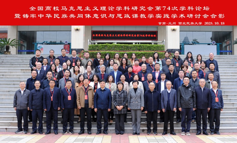 为深入学习习近平新时代中国特色社会主义思想,全面贯彻习近平总书记关于加强和改进民族工作的重要思想,由全国高校马克思主义理论学科研究会主办、西北民族大学马克思主义学院承办的全国高校马克思主义理论学科研究会第74次学科论坛暨“铸牢中华民族共同体意识与思政课教学实践”学术研讨会于2025年10月18日在西北民族大学召开。马克思主义学院院长杨芳教授受邀参加会议,与来自全国各高校的专家学者共同探讨大中小学思政课一体化视域下“铸牢中华民族共同体意识与思政课教学实践”的前沿议题。