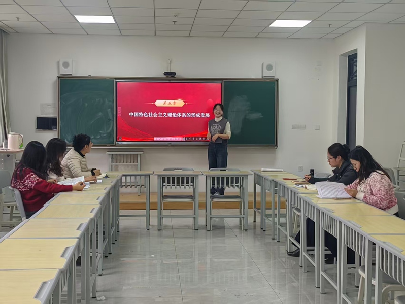 会上,金研老师分享了《毛泽东思想和中国特色社会主义理论体系概论》第五章《中国特色社会主义理论体系的形成发展》的备课思路。她围绕教学重难点解析、典型案例筛选、课堂逻辑梳理等环节展开详细交流,为全体教师提供了可借鉴的教学参考范式。