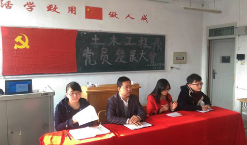 根据学院党委学生党员发展工作相关会议精神和要求,土木工程系党总支于11月18日下午16:30在2号教学楼306教室召开了党员发展暨转正大会。土木工程系党总支书记尚飞、学生党支部书记张希伟、团总支书记陈小丽以及全体学生党员、入党积极分子共计62人参加了大会。会议由党政秘书祁海云同志主持。