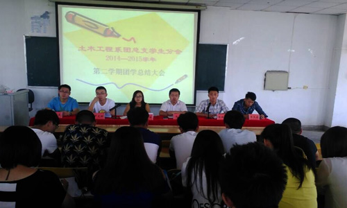 光阴如箭,岁月如梭,一学年的工作已接近尾声。根据系团总支工作计划和安排,土木工程系团总支于7月10日中午在2号教学楼315教室召开了团总支2014-2015学年团学工作总结大会。土木工程系党总支书记尚飞,团总支书记陈小丽以及系团总支学生分会第一届主席团成员出席会议并在主席台就坐。土木工程系团总支学生分会全体学生干部,各班班委参加了大会。会议由陈小丽老师主持。