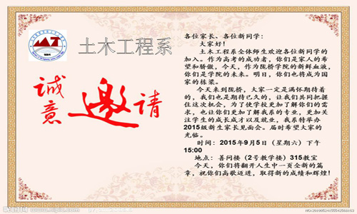金秋九月,学院又迎来了一批新同学。按照学院迎新工作安排和部署,根据系工作计划,土木工程系于9月5日下午15:00在2号教学楼315教室召开2015级新生家长见面会。土木工程系系主任曹凯高级工程师,党总支书记尚飞,教学副主任詹春,土木工程教研室主任马龙,工程管理教研室主任王顺利,土木工程实训中心副主任易建强,王志童,2015级辅导员王国玺及近200名新生家长参加了见面会。新生家长见面会由土木工程系党总支书记尚飞主持。