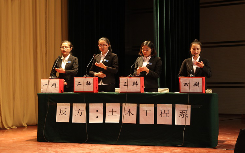 土木工程系辩手从精彩的开场风采展示就赢得了在场评委和观众的热烈掌声。我系一辩的开篇立论将我方的观点进行全方位的陈述,所谓论据充实、论词严谨、立论紧扣主题;在驳辩、攻辩、自由辩等环节,我系辩手通过交替发言的形式再次强调我方观点;在整个辩论的过程中土木工程系辩手个个巧舌如簧、才思敏捷、旁征博引、据理力争,她们那种默契配合,将整个比赛带入了一个又一个高潮,台下掌声不断,将观众也带进了辩论的海洋。同时,在如火如荼的辩论中又不失礼仪,充分展示了土木工程系学子的良好精神风貌和高尚修养礼仪。整个比赛激动人心。最后,经过一个多小时激烈辩论,土木工程系赢得了第十五届校园大观辩论赛的冠军。