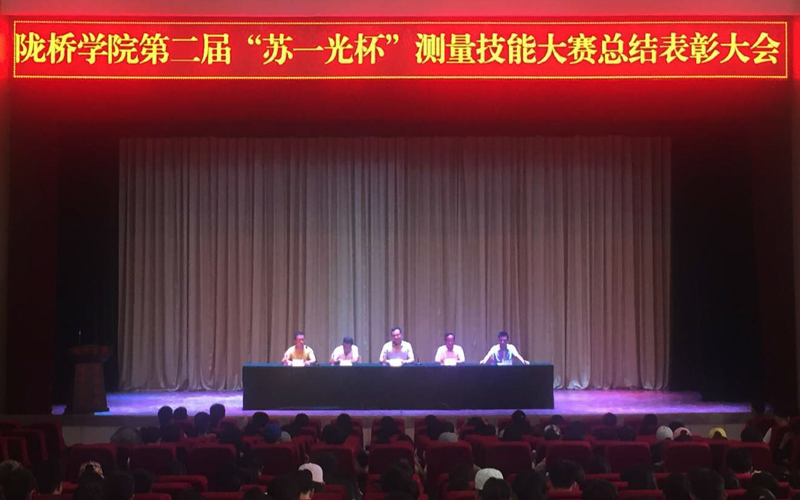 由学院教务处主办、土木工程系承办、苏州一光仪器有限公司和兰州祥龙宾得仪器仪表有限公司冠名赞助的陇桥学院第二届“苏一光杯”测量技能大赛总结表彰大会于7月5日下午在学术报告厅隆重举行。学院副院长高军、教学督导组副组长杨怀有、教务处副处长于泳海、土木工程系主任曹凯、系党总支书记尚飞应邀出席了大会,土木工程系师生代表共计700余人参加了大会。大会由土木工程系党总支书记尚飞主持。