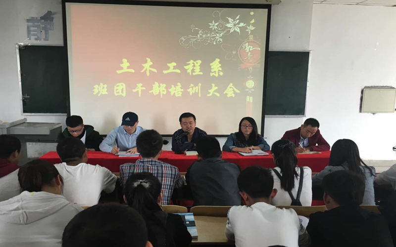 为了进一步强化班风学风建设,巩固和完善学生日常行为习惯养成教育成果,充分发挥团学干部的模范带头作用,土木工程系于9月20日下午16:30在2号楼315教室召开了班团干部培训大会。土木工程系党总支书记尚飞、团总支书记王国玺、全体辅导员、副部长级以上团学干部以及2016级、2015级、2014级各班班委会成员参加了会议。会议由土木工程系团总支书记王国玺主持。