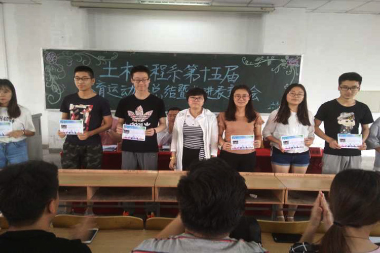 最后,土木工程系党总支书记尚飞做了总结讲话。尚书记首先向获得表彰奖励的运动员和团学干部表示热烈的祝贺。尚书记在讲话中指出,荣誉的取得离不开全体师生的不懈努力和勇于拼搏,更离不开全系上下团结一心、奋勇向前的集体责任感。尚书记要求全体团学干部和运动员要将敢于拼搏、勇攀高峰的土木体育精神传递下去、发扬光大;要及时总结得失,通过运动会的锻炼,砥砺品格、提升自我,在展示体育风采的同时不断提高个人的综合能力;要将运动会中激发出来的青春不言输,爱拼才会赢的精神融入到今后的学习、生活、工作当中,携手并进,共同推动土木工程系教育教学各项工作又好又快发展。