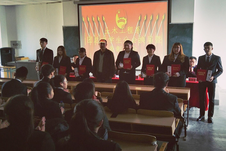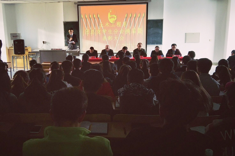 11月8日下午16:30,土木工程系团总支换届暨先进表彰大会在2号教学楼315教室召开。土木工程系主任栗宜民教授,系党总支书记尚飞及全体辅导员老师、团学干部代表共计200余人参加了大会。大会由土木工程系团总支书记王国玺主持。