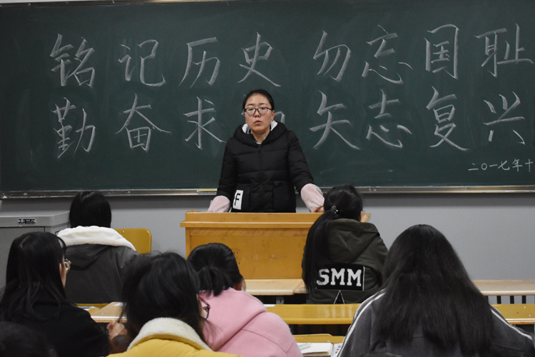 各班辅导员亲自进班组织召开主题教育班会,从回顾历史,缅怀先烈,时代召唤,历史使命等方面对同学们进行了一次意义非凡的爱国主义教育。通过主题班会,同学们内心深受洗礼,激发了同学们铭记历史,勿忘国耻的爱国主义情怀,也进一步增强了同学们勤奋求知,务实创新,争做新时代弄潮儿的坚定意志,达到了主题班会的教育目的。