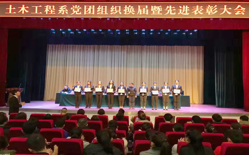 11月21日下午16:30,土木工程系在学术报告厅召开党团组织换届暨先进表彰大会。土木工程系党总支书记尚飞,系副主任胡涛及全体辅导员老师、学生代表共计700余人参加了大会。大会由土木工程系团总支书记王国玺主持。