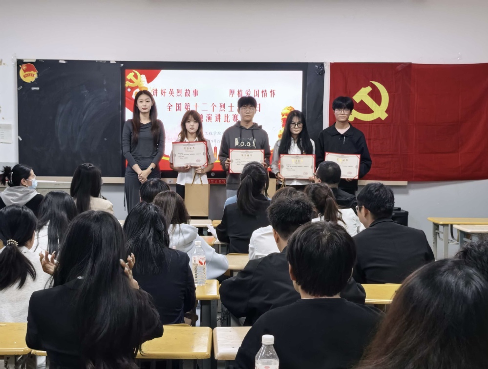 经评委公正评审,比赛最终决出一等奖1名、二等奖5名、三等奖8名及优秀奖若干名。党委副书记李剑在总结讲话中强调,本次比赛是“让英烈故事活起来”的生动课堂,希望同学们将这份感动转化为深耕专业、报国担当的行动,在今后的学习、生活中以土木人的坚守传承英烈精神。