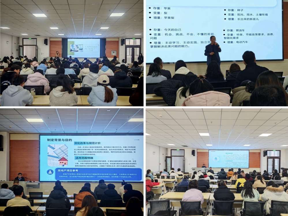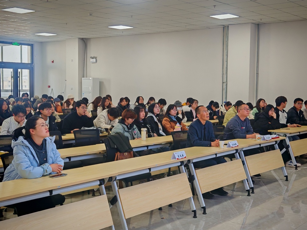 11月26日下午,第二场讲座开讲。甘肃省建设设计咨询集团有限公司国家一级注册建筑师吴文婷高级工程师以《从蓝图到家园——为“好房子”立序》为题,分享了兰州保利・领秀山、兰州中海华庭等多个大型住宅项目的设计历程,从户型优化、空间利用、绿色节能、人文关怀等方面,解读了“好房子”的设计标准与创新思路。她通过设计方案对比、实际建成效果展示,让学生直观感受建筑设计的逻辑性与创新性,激发了大家的专业学习热情。随后,该公司岩土专业总工程师冯炳超高级工程师聚焦《新基建+AI时代建筑行业工程类专业大学生能力提升与终身成长路径》,结合西北特殊岩土治理、地质灾害勘察等专业领域的实践案例,分析了智能建造、绿色建筑发展背景下行业对复合型人才的需求标准。他从专业知识夯实、实践技能锤炼、创新思维培养、职业素养提升四个维度,为大学生规划了成长路径,鼓励同学们主动对接行业前沿,树立终身学习理念。