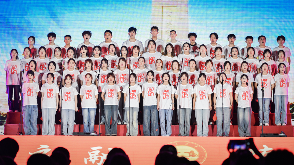 晚会最后,全体师生共同合唱《歌唱祖国》,将晚会推向高潮。磅礴激昂的旋律和深情豪迈的咏唱,抒发了全体师生对伟大祖国的深切热爱与无限祝福。歌声中有山河锦绣的壮丽图景,有薪火相传的赤子情怀,更有新时代青年与国同心、与时代同行的坚定信仰,凝聚了兰工商学子澎湃的青春力量,唱响了对祖国未来的美好憧憬与铿锵誓言。