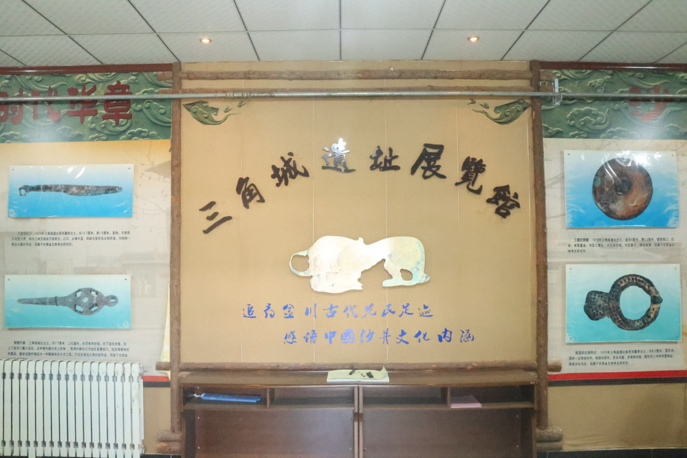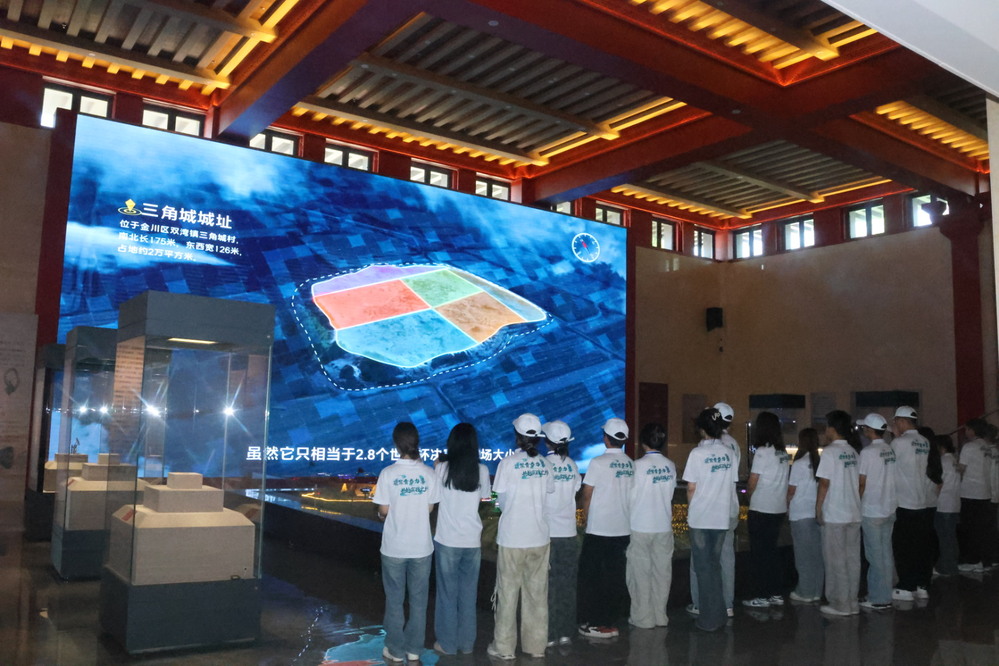 三角城遗址展览馆作为沙井文化的核心见证,虽以图片展陈为主,却藏着金川古代先民的生活密码。从航拍图中清晰可见的城垣轮廓,到考古现场记录的文物陶器,再到先民聚落复原示意图,一张张图片串联起3000多年前的文明脉络。队员们凝视着画面中农牧交融的生活场景,仿佛看见先民们在戈壁草原上筑城而居、耕耘狩猎的身影,逐步厘清沙井文化“农牧共生、青铜冶炼”的鲜明特质。