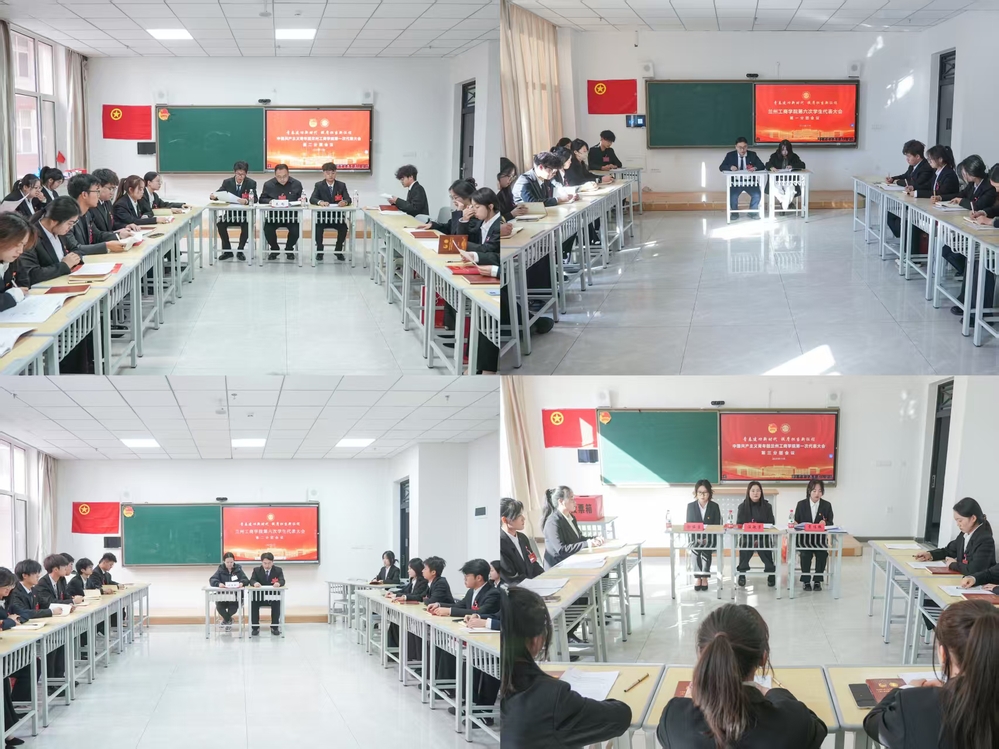 随后,大会进入第一次正式会议环节。赵玉平代表共青团兰州工商学院委员会作工作报告,系统回顾了学校共青团在思想引领、组织建设、服务青年、校园文化等方面取得的丰硕成果,明确了未来五年围绕思想铸魂、青春建功、服务提质、改革强基的发展方向。同时,报告了团费收支、管理与使用情况,确保经费运作公开透明、规范高效。学生会主席团成员王秀琇同学代表第五届学生会作工作报告,总结了学生会在服务同学成长、维护学生权益、丰富校园生活等方面的实践成果,并对新一届学生会工作提出展望。会议还听取了《兰州工商学院学生会章程修订说明》及相关选举办法。