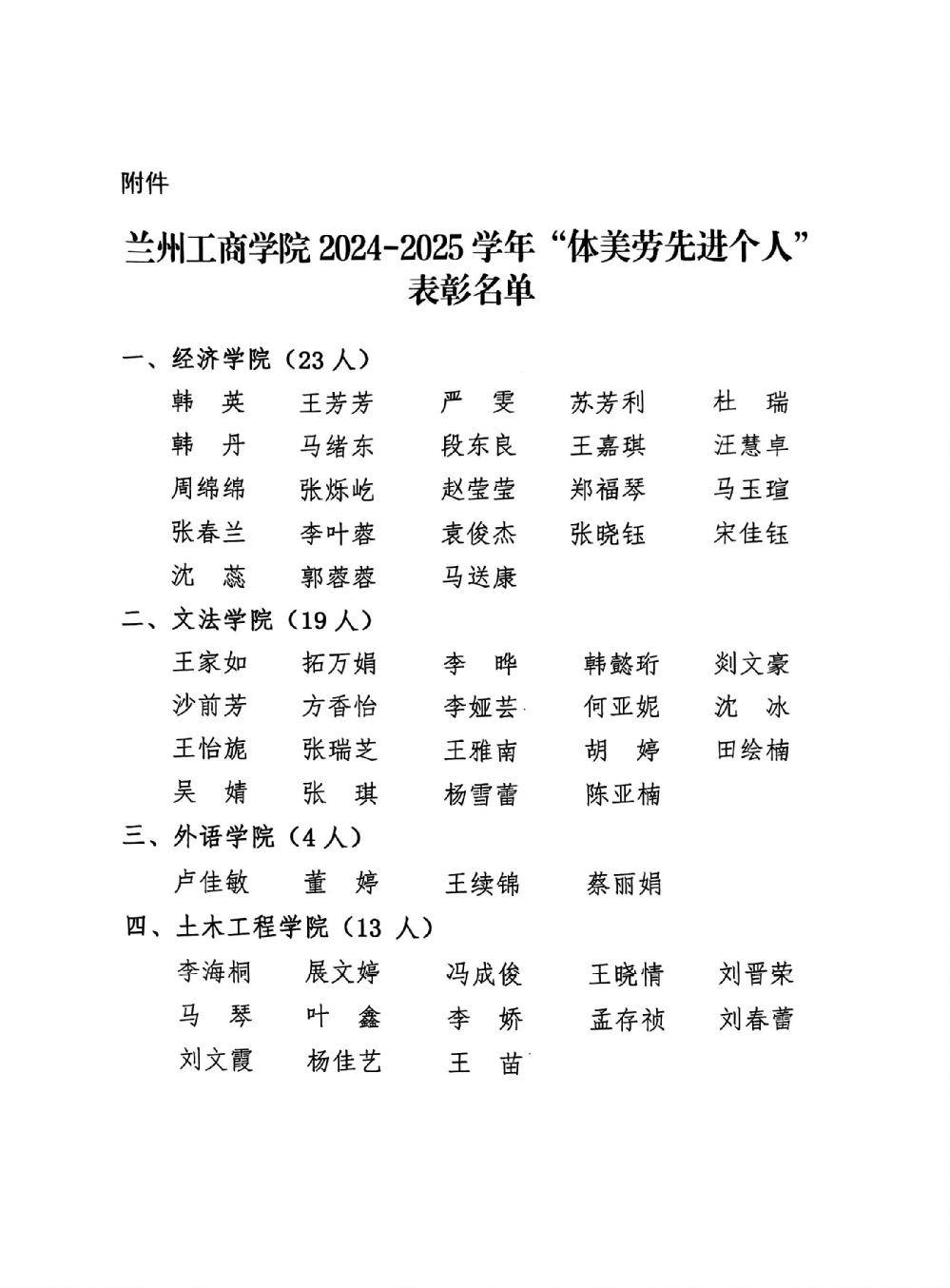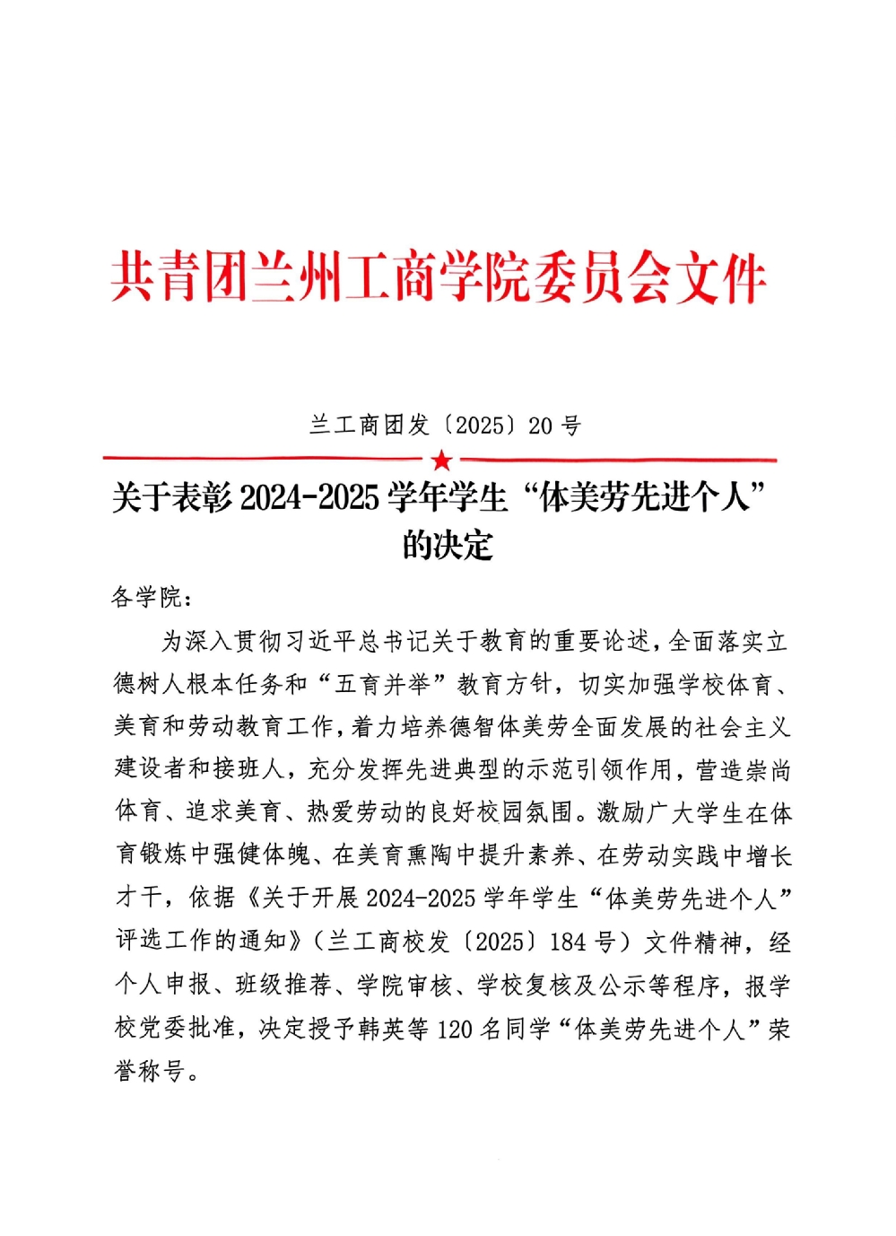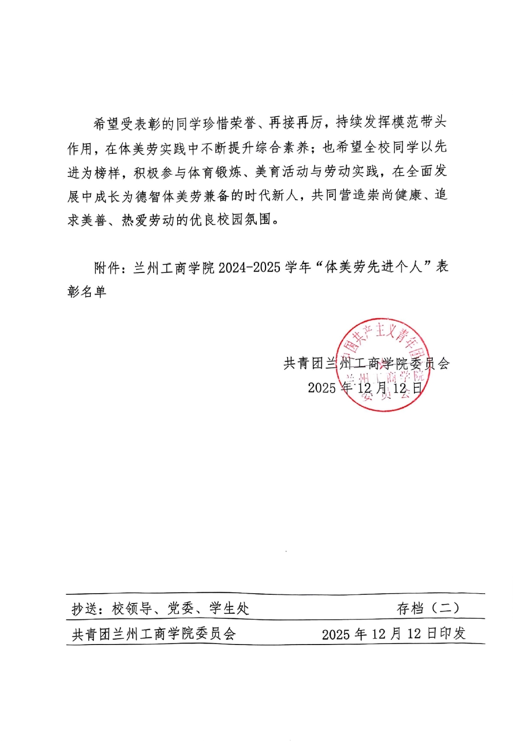 关于表彰2024-2025学年学生“体美劳先进个人”的决定